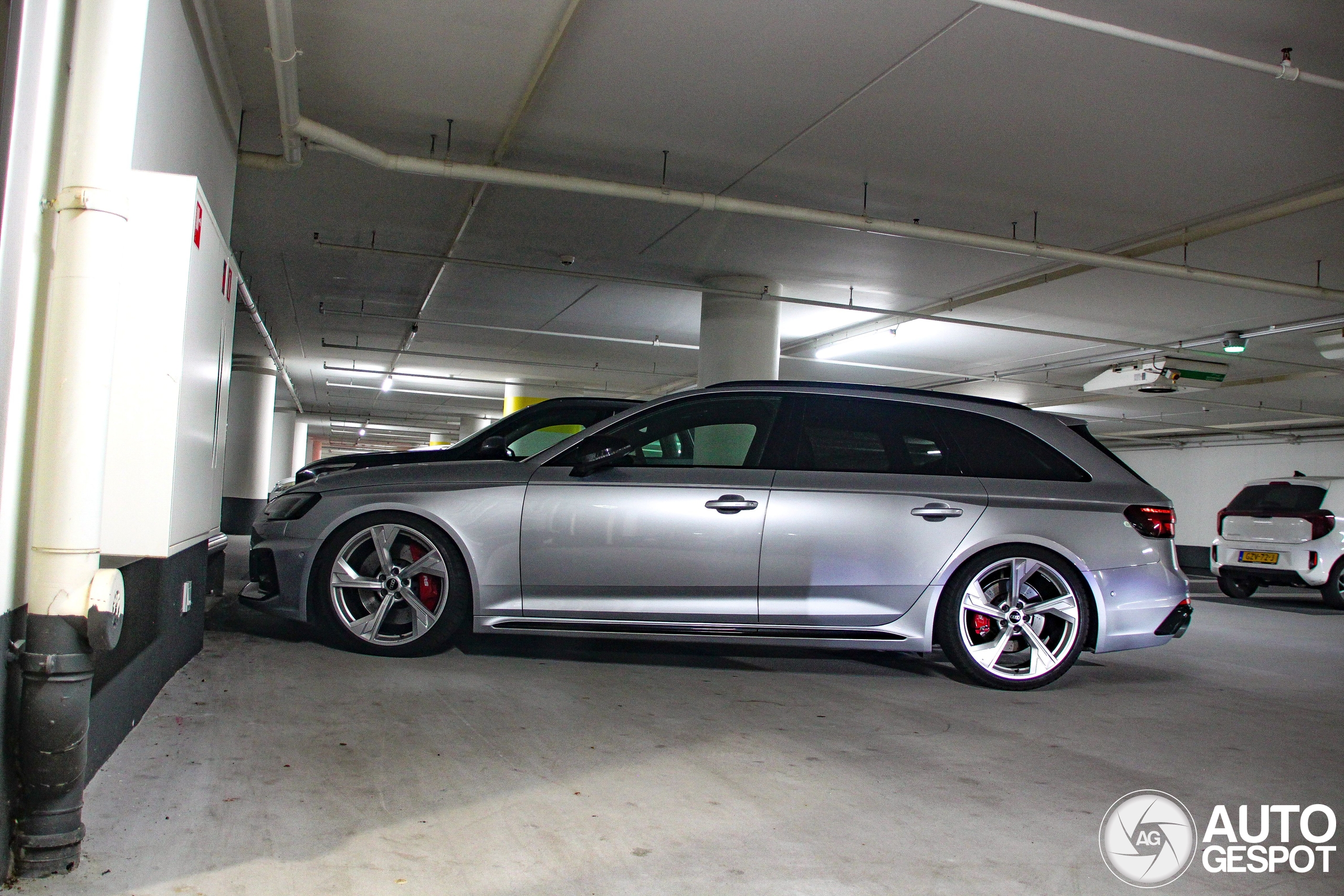 Deze stond op -5 diep onder de grond heel sneaky achter het trappenhuis verstopt in deze parkeergarage vorige week. Deze zilvergrijze RS4 die vorige maand geïmporteerd is naar Nederland stond met zijn zilveren velgen er prachtig bij. Hoog Catarhijne, Utrecht.