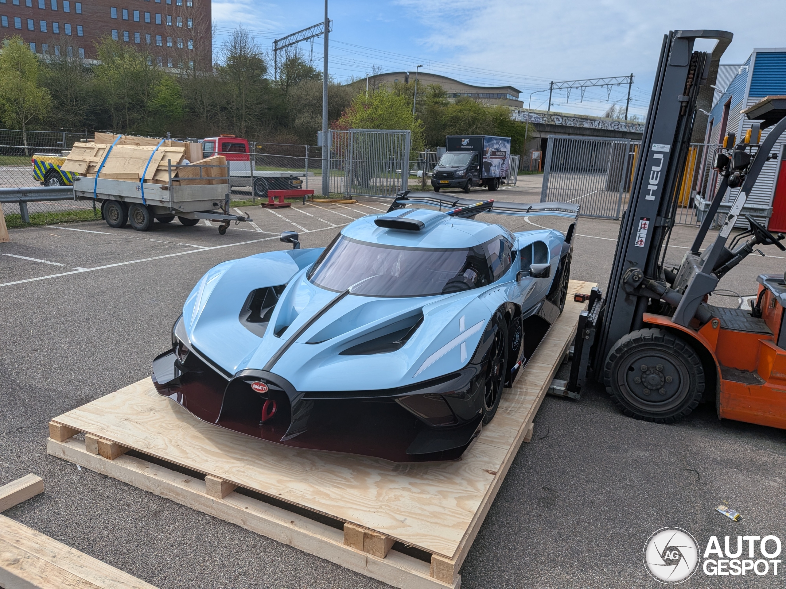 Dankzij een tip van mijn broer leerde ik dat deze Bolide hier uitgeladen werd. Meteen in de auto gestapt en naar Hoofddorp gereden, want zo'n kans krijg je nooit meer! Wat een bizar apparaat Hij komt net van de fabriek en dit houtbedrijf gaat een box op maat maken. Daarna wordt hij naar Singapore verscheept