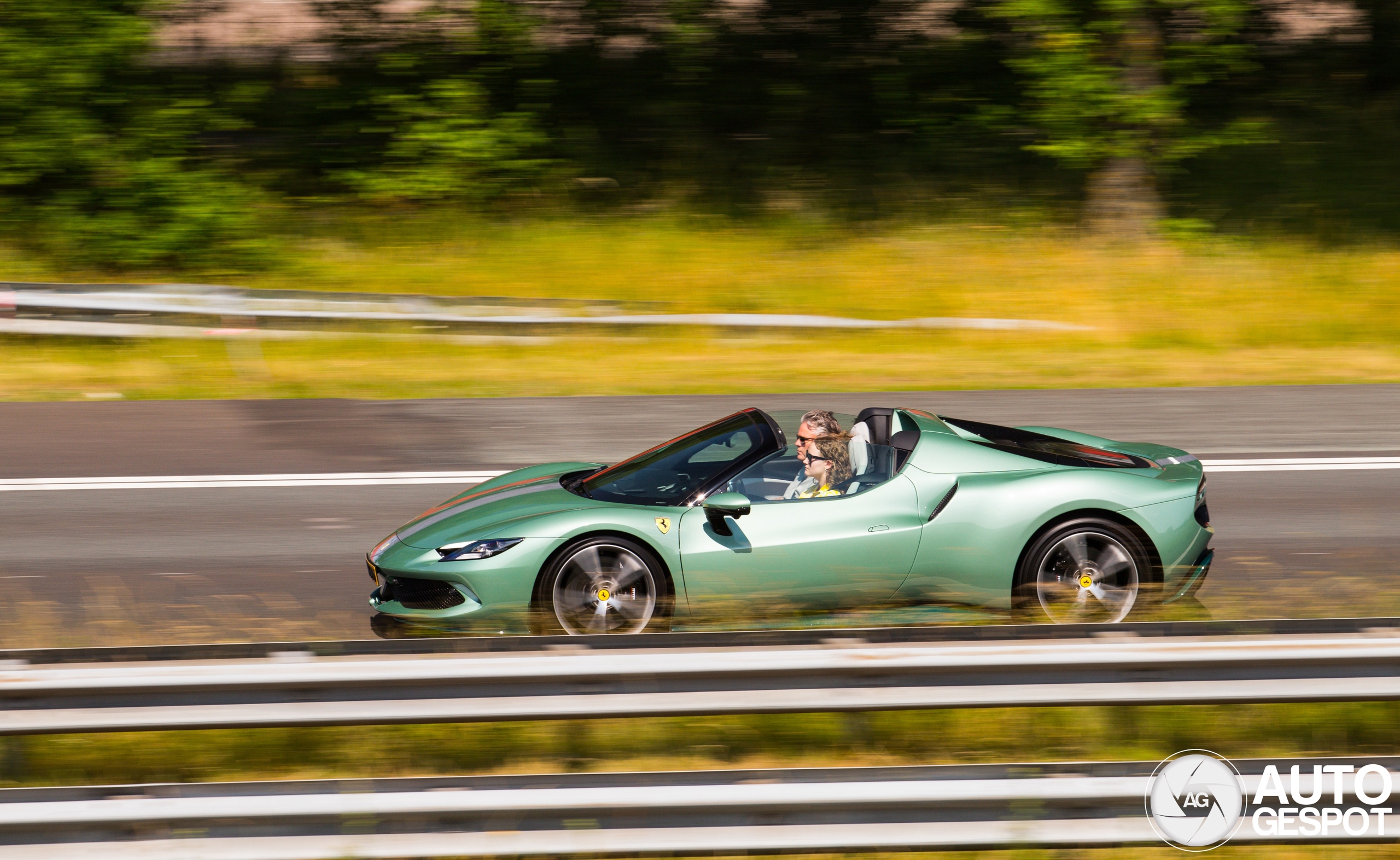fantastisch exemplaar!! jonge dame lekker achter het stuur van een fantastische 296 GTS!! toff met dat groene Carbon in het exterieur!