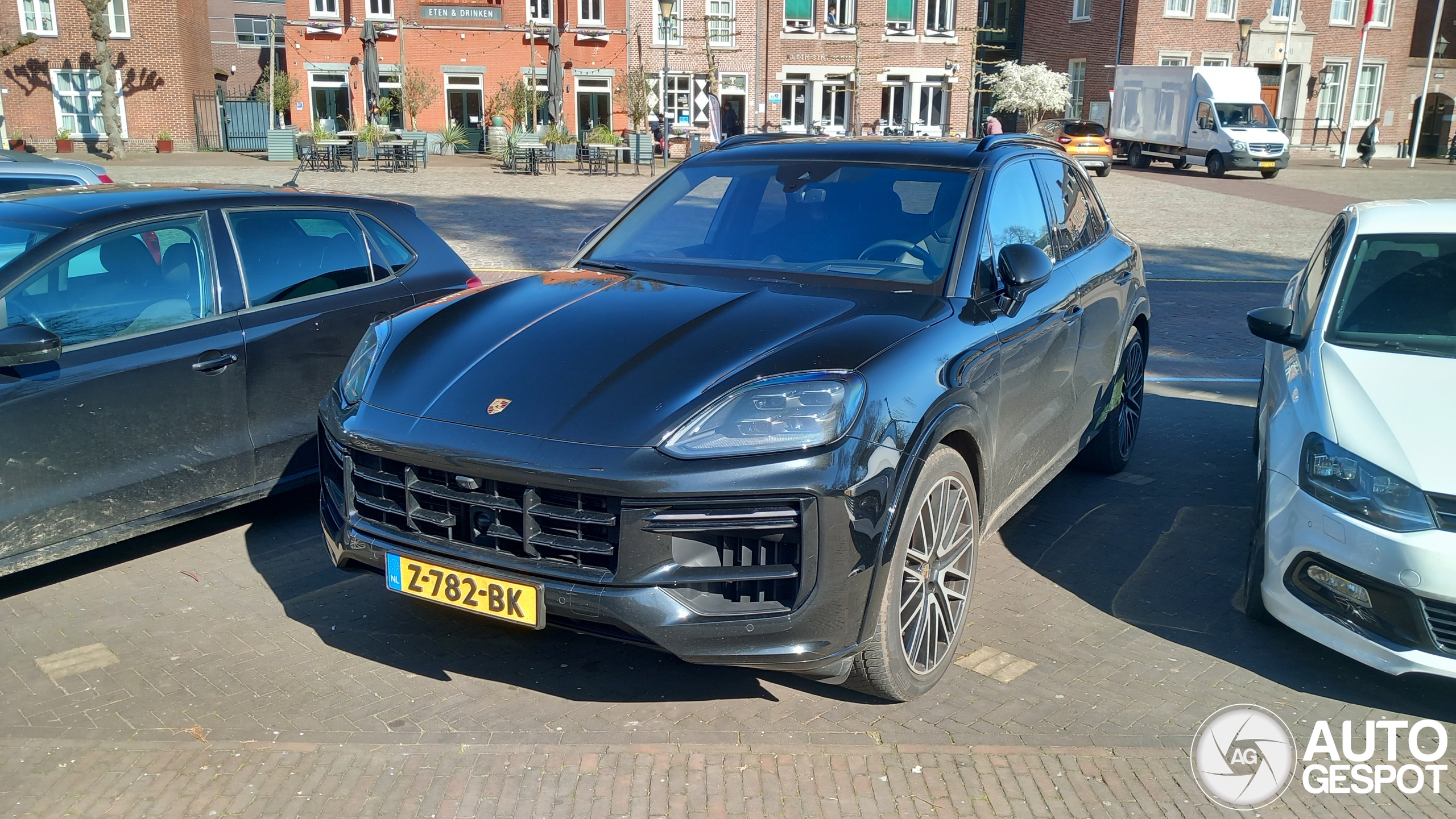 Een Cayenne Turbo. Je ziet ze wel vaker rijden, toch had ik deze generatie Turbo nog niet op de site staan. Moet zeggen dat ik de latere generaties van de Turbo (en de GT) een stuk mooier vind.