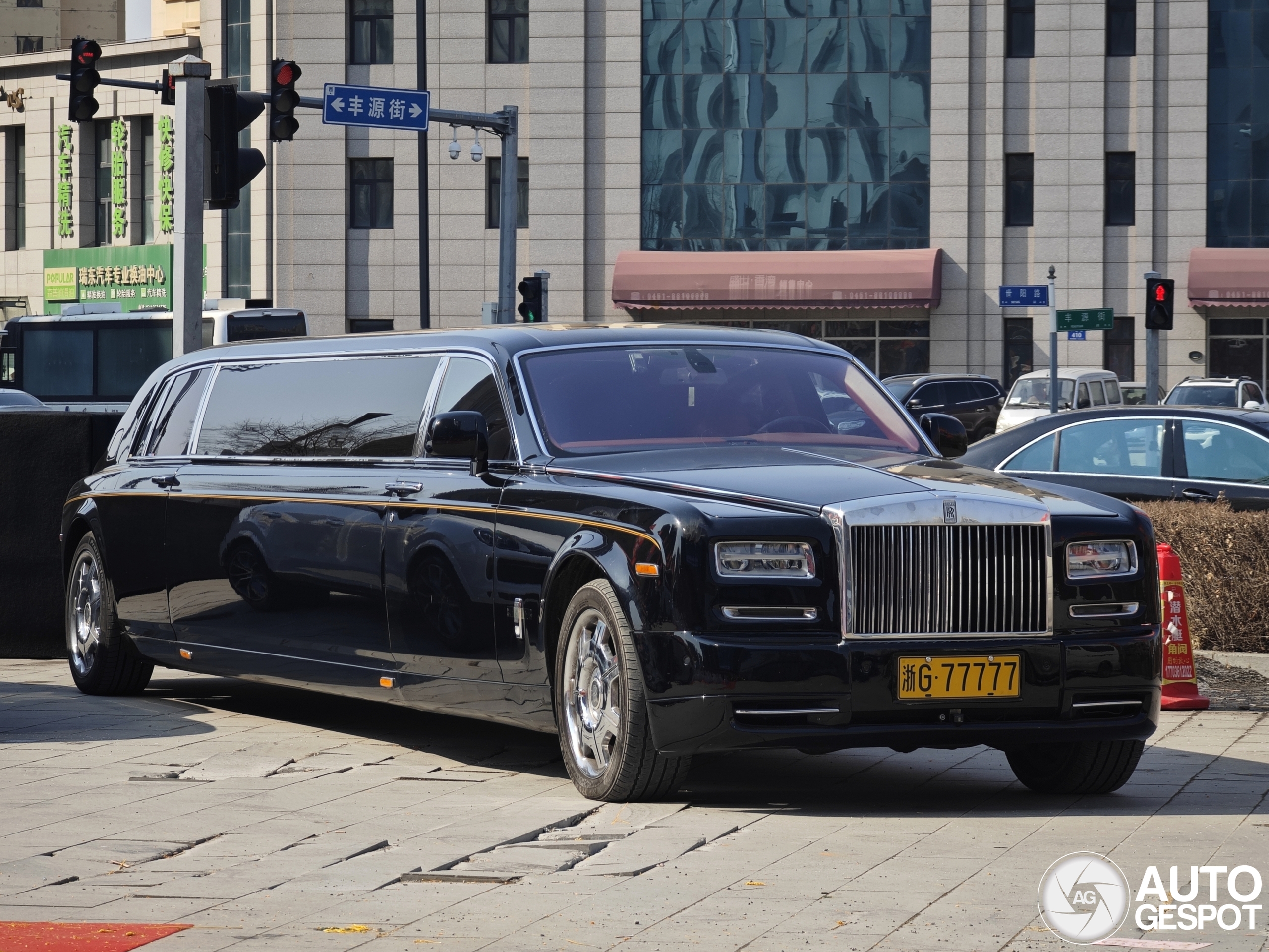This is a custom-limousine Rolls-Royce Phantom by Star Custom, with a length of 9 meters. It made its debut at the 2011 Shanghai Auto Show with a staggering price tag of 150 million RMB. Later, its front end was updated to the facelifted version, and its license plate was changed once.